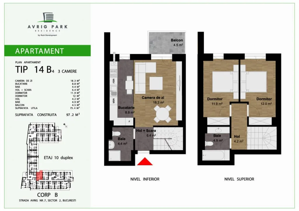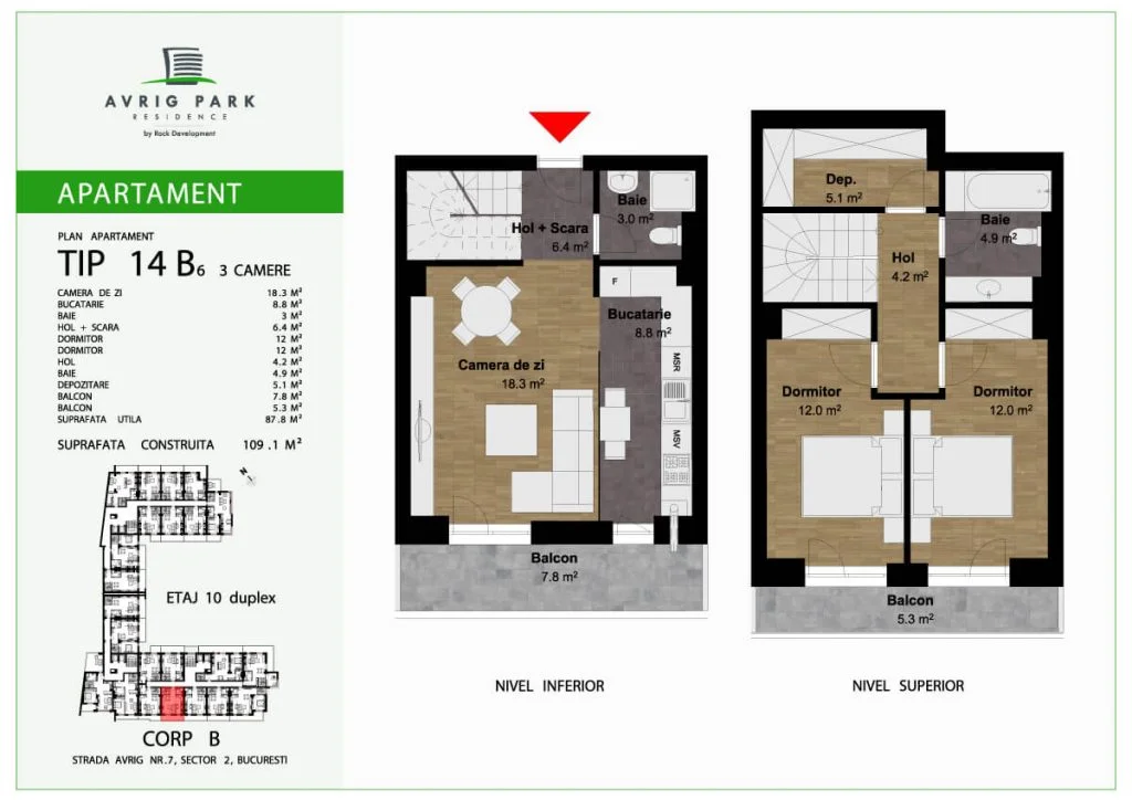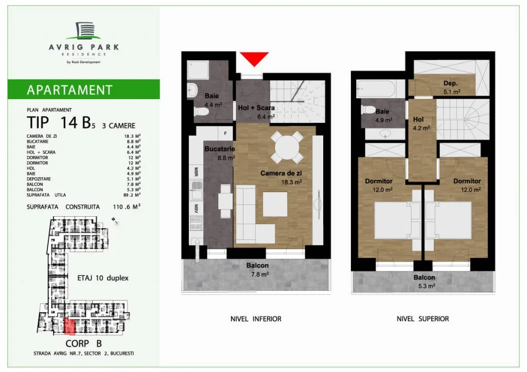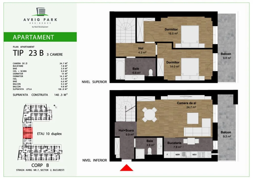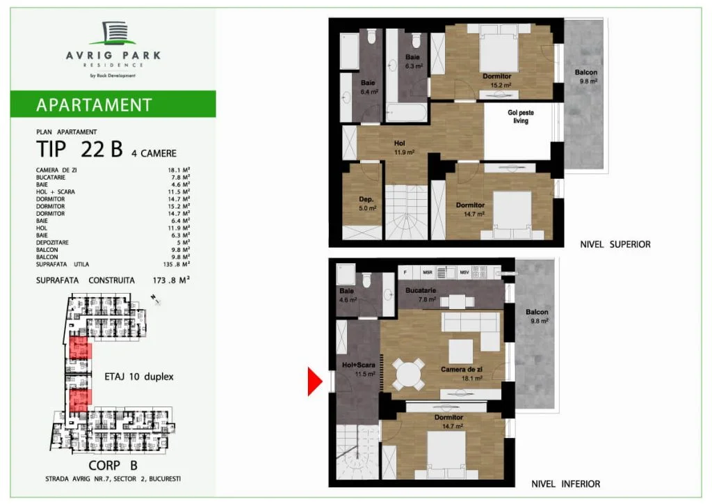 Apartamente de tip duplex cu suprafețe generoase