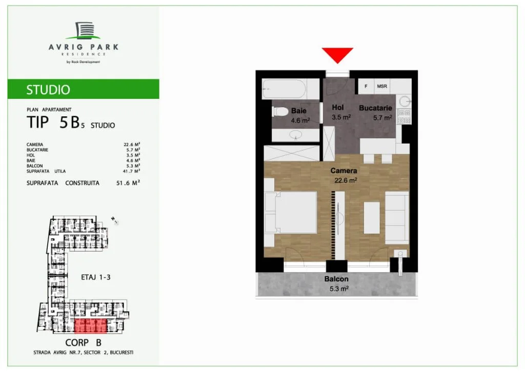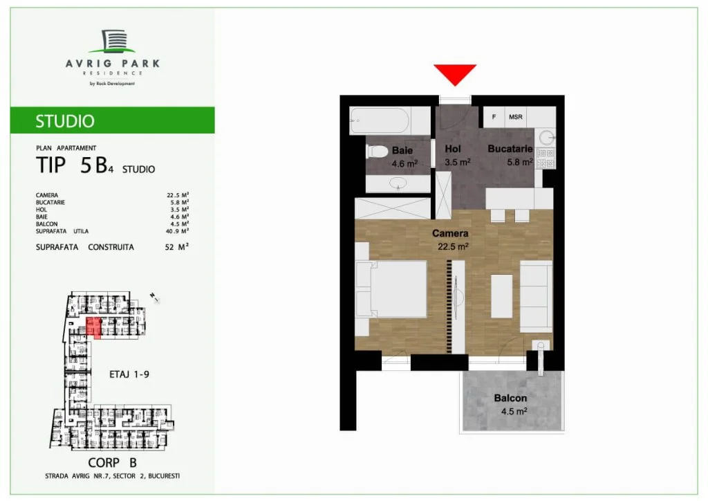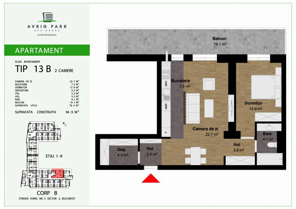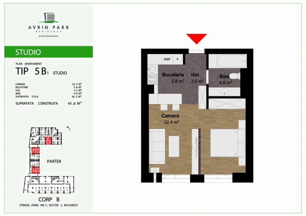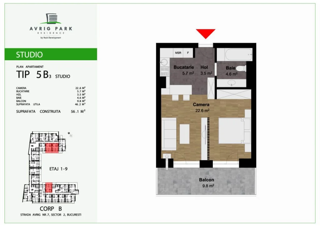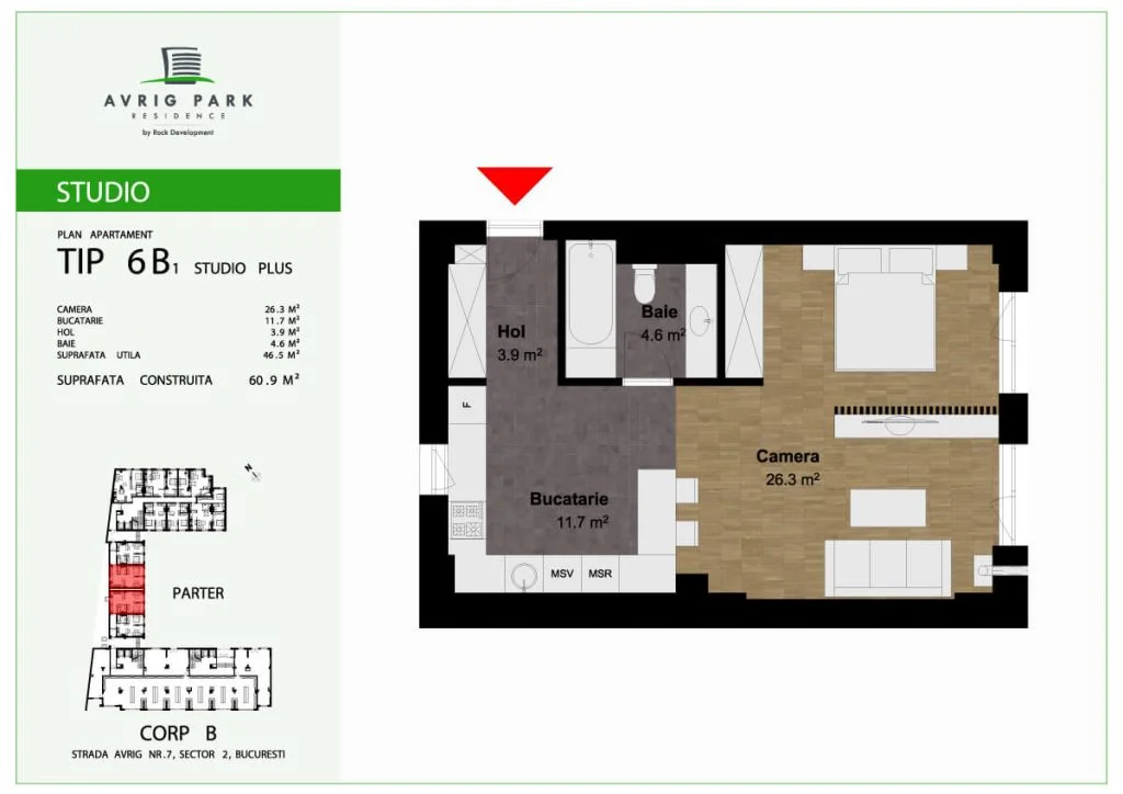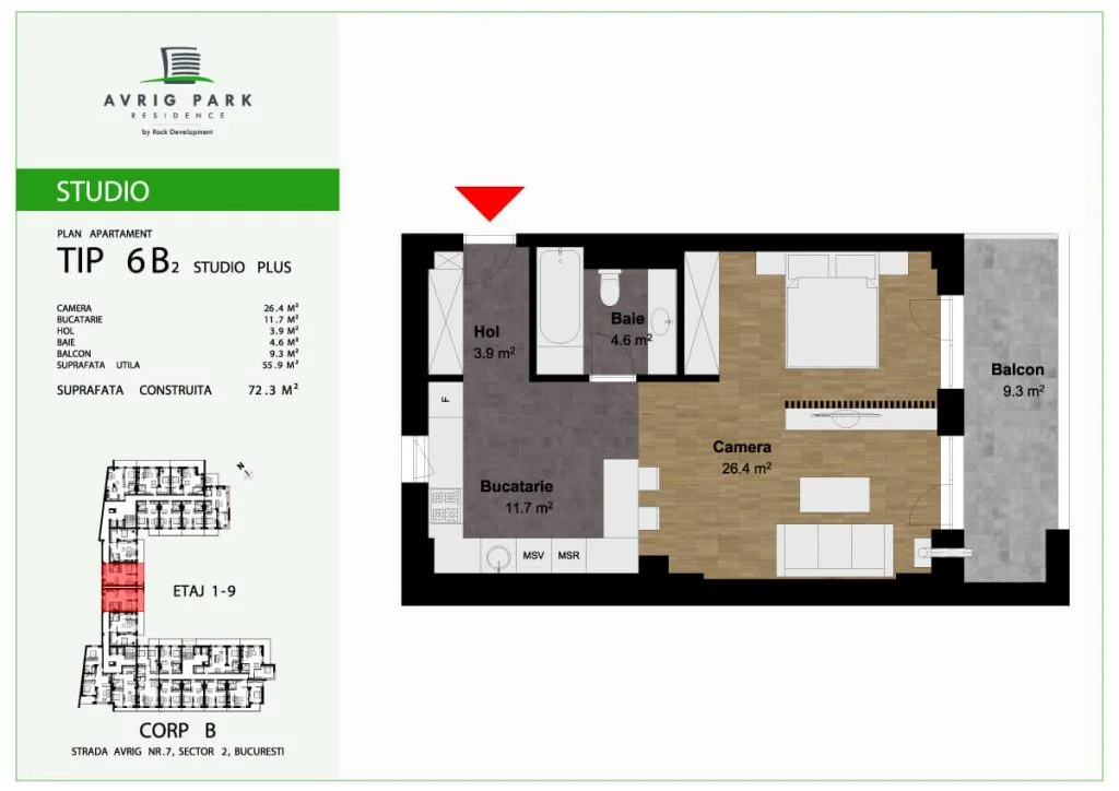 Amplasat pe Strada Avrig, în imediata apropiere a zonei Bucur Obor, proiectul Avrig Park Residence cuprinde două corpuri de clădire independente, spații verzi, spatii comerciale la parter, iar în subteran, oferă locuri de parcare pe 5 niveluri, dar și spații de depozitare pentru toate unitățile locative.