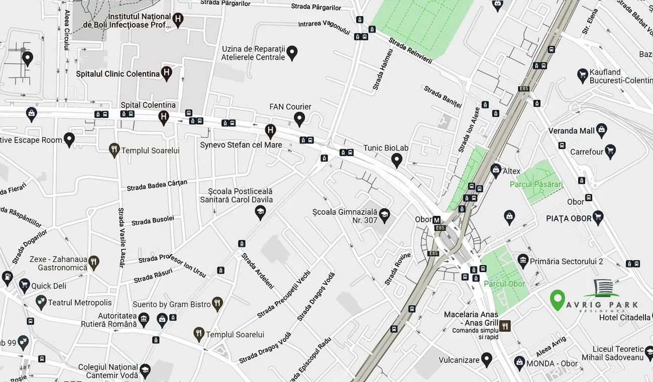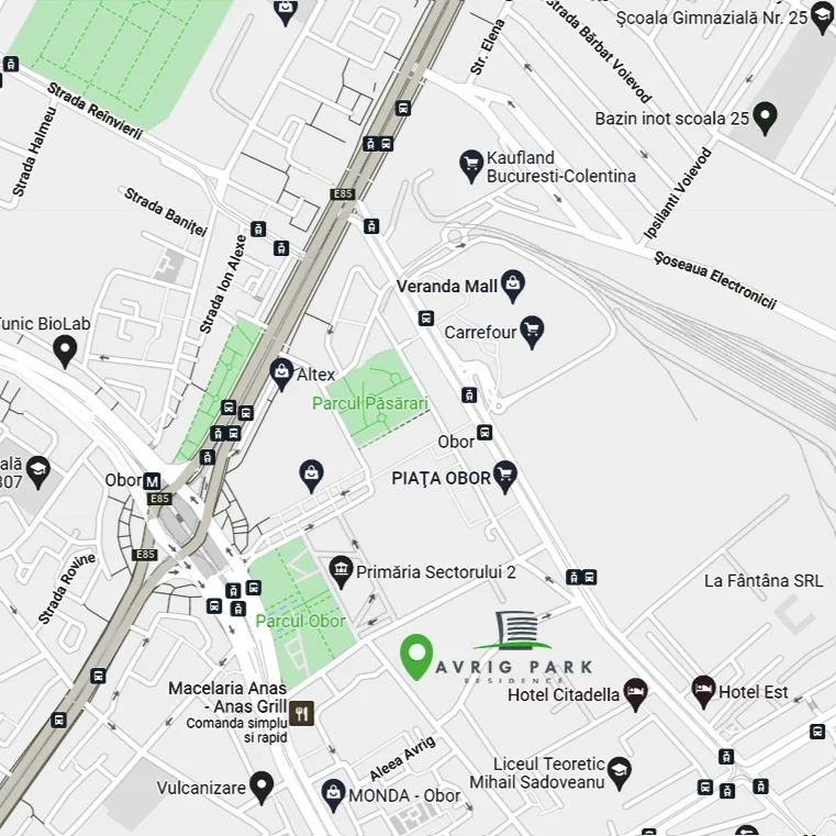 Avrig Park Residence este situat la conflueța zonei Comerciale Obor și a Bulevardului Mihai Bravu, în apropierea stației de metrou Bucur Obor, aflată la doar 3 minute. Facilitățile și avantajele zonei extrem de atractive, nu se opresc aici. În apropiere se află multiple unități de învățământ, parcuri, Veranda Mall, Mega Mall, Kaufland, Careefour, Mega Image, piețe agroalimentare, policlinici și spitale.